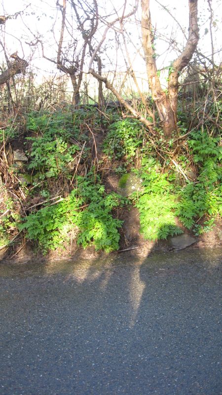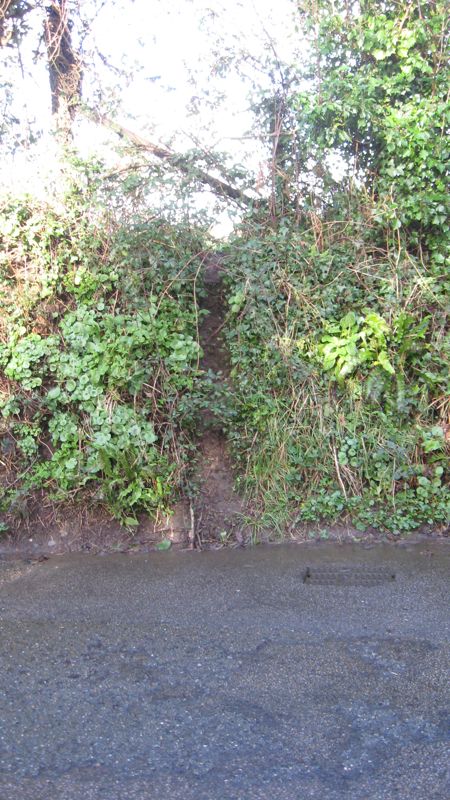 Three badger runs coming across the lane just down from the railway bridge
